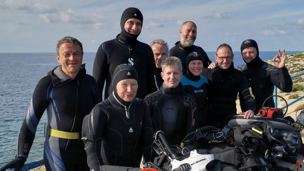 Ein zwei Meter langer Thunfisch am Double Arch Reef, ein Wrack auf 40 Metern Tiefe, der Salzwassersee Inland Sea und das Blue Hole – an Höhepunkten mangelte es den neun Sterntaucherinnen und Sterntauchern nicht bei ihrer einwöchigen Vereinsfahrt nach Gozo im Oktober. Sie ließen es sich in dem Dorf Marsalforn gutgehen. Da sich die „Reiseleiter“ Ewald und Markus bereits bestens auf der Insel auskannten, benötigte unsere Delegation noch nicht einmal einen heimischen Guide zur Erkundung des Terrains. Die Damen und Herren machten sich mit Pkw, Van und Pickup selbstständig. Ein paar Eindrücke aus Gozo, eingefangen von Klaus: